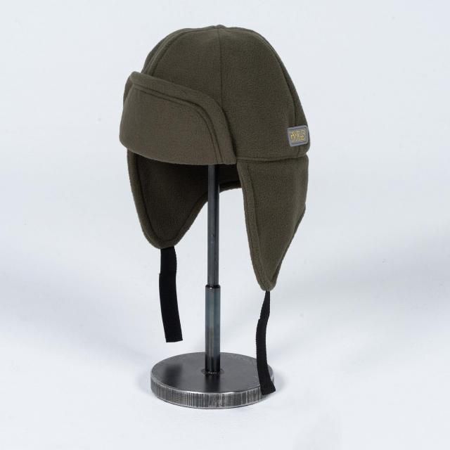 イヤーフラップを含んだサイドは上げ下げができる仕様で、フロントのツバは上げた状態での固定の仕様となっている。