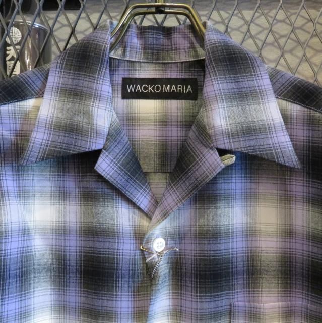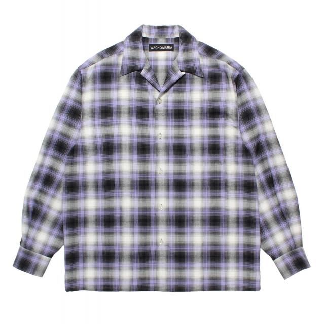 WACKOMARIA  OMBRE CHECK OPEN COLLAR SHIRT L/S (TYPE-3)PURPLE
