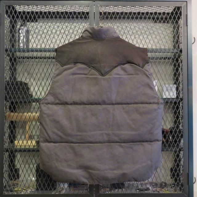 Rocky Mountain Featherbed の定番ダウンベストをベースに、KAMIYA が使用 するコットンキャンバス生地〈通称ダック生地〉を採用。両ブランドのアイデンティティをクロスオーバ ーさせた。