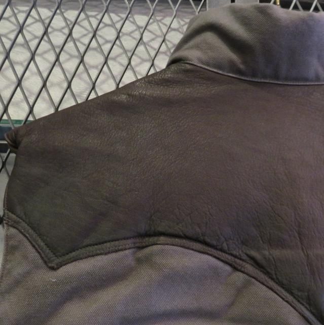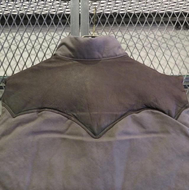 アイコニックなウエスタンヨーク部分には、一枚裁ちの牛革をダークブラウンで配色。スナップボタンや リベットには、エイジングと相性の良いブラス製パーツを採用。