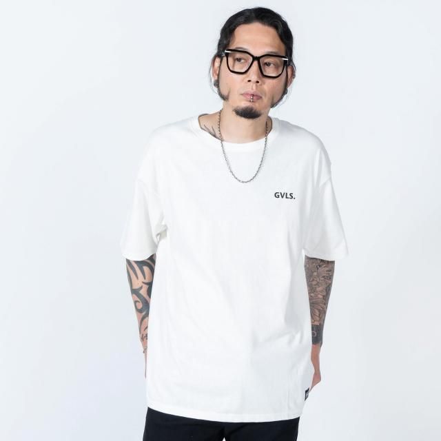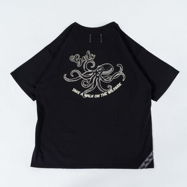 フロント右胸にはワンポイントのGVLSロゴのみのシンプルなデザイン。バックにGVLSのアイコンの1つであるタコを大胆にプリント。